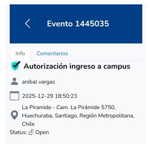 If you arrive on your own, separate from the group, present this access number (evento number), along with your name, to the security personnel managing campus entry.